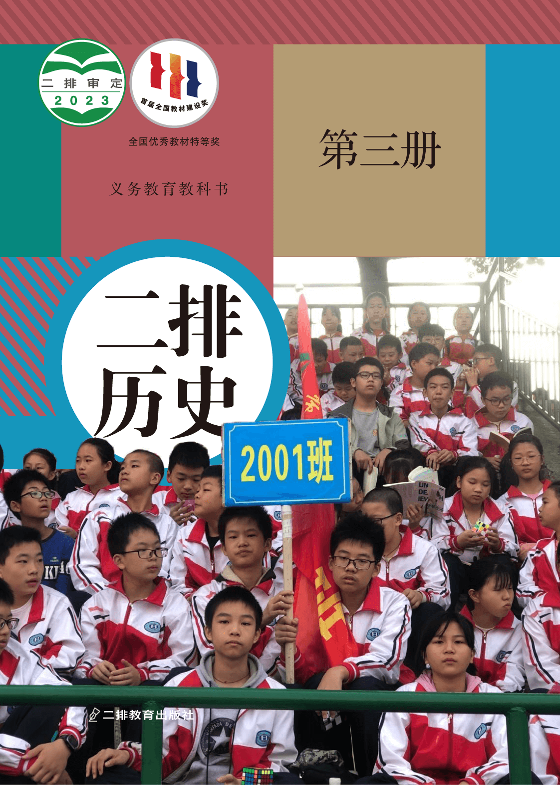 • 本册教科书封面几经斟酌,最终选择了七年级校运会的历史影像。这张图片生动刻画了一班大众的人物形象,给人以尘世喧嚣的感受。